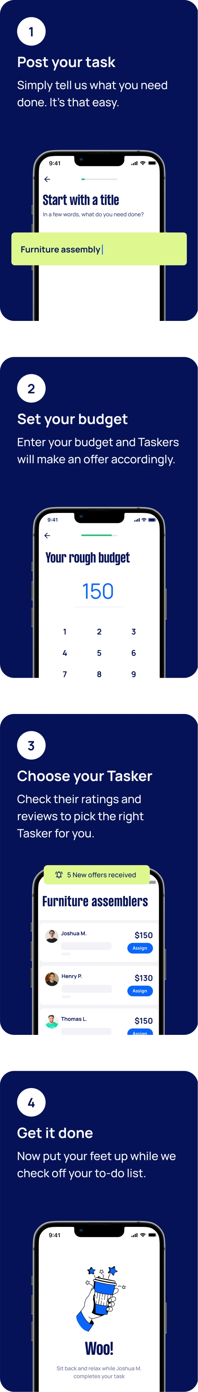 Make sure you check out the Tasker’s profile before accepting an offer, read their reviews and take a look at their skills and badges. Check out our guide for choosing the right Tasker