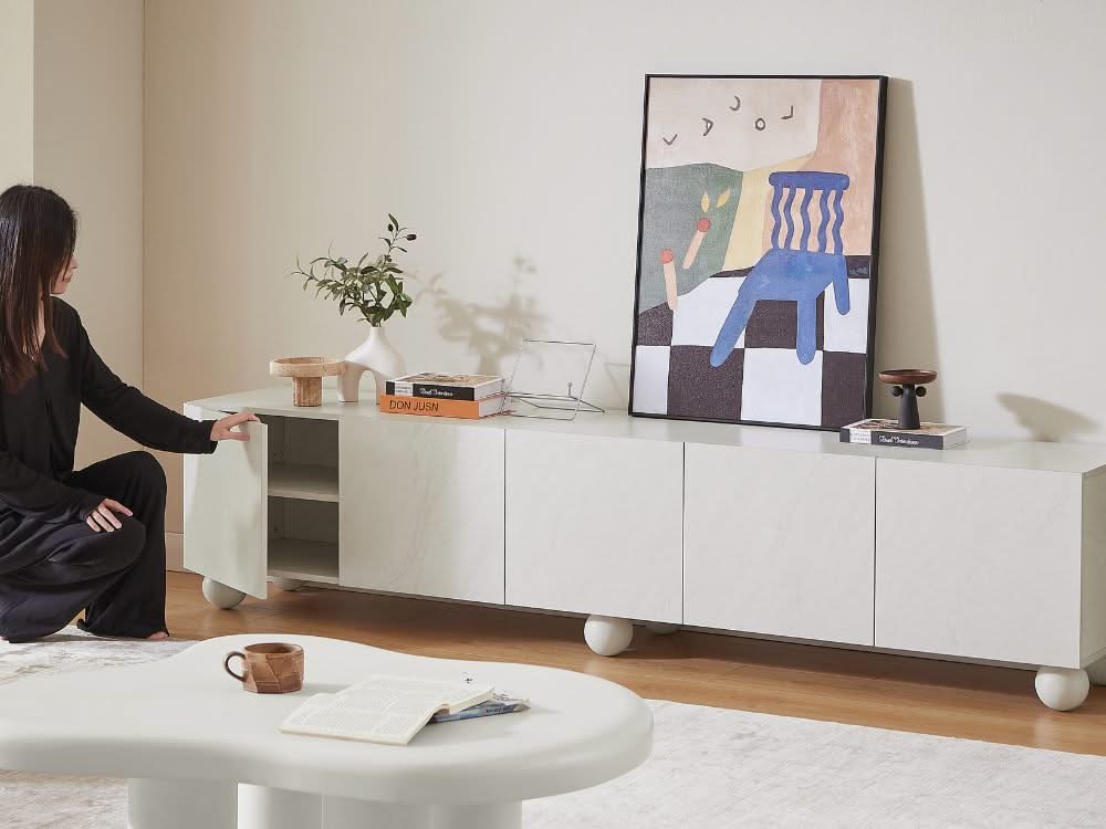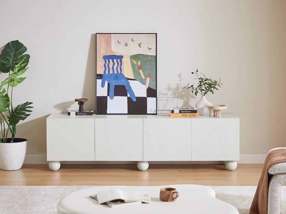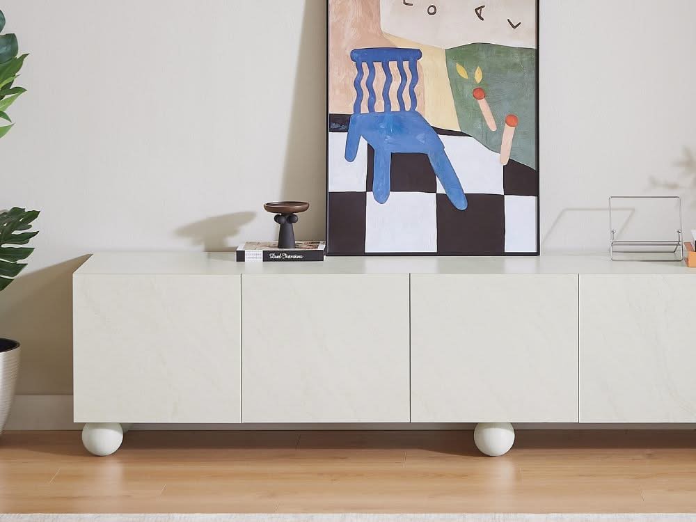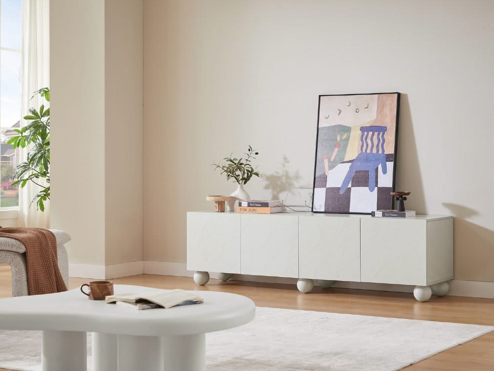The round legs of the Ally TV unit add a unique twist to the sleek lines of the body, creating an eye-catching detail that fits with the modern look of this trendy piece.