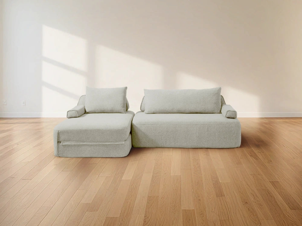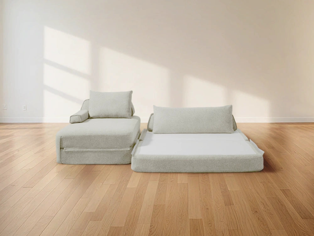 Cushie Modular Sofa Bed transforms from a stylish seat to a cozy bed in seconds—just flip and snooze. Unlike traditional sleeper sofas with noisy metal frames and complex pull-outs, Cushie keeps it simple and silent.