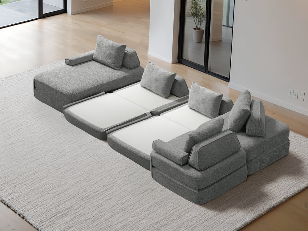 The first modular sleeper sofa of its kind, you'll fall in love with the comfort, whether your sitting or sleeping. Engineered with pocket springs and memory foam, it's a real bed and a real sofa. Being lightweight and flexible, the modular design adapts to your home and grows with you. Spill and stain resistant, machine-washable covers also make keeping Cushie Modular Sofa Bed fresh as easy as can be.