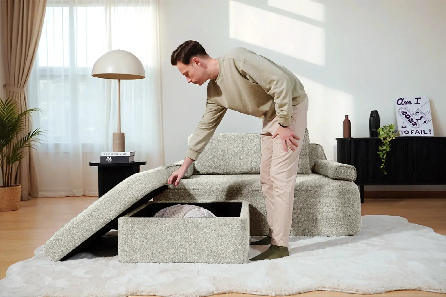 Cushie Modular Sofa Bed transforms from a stylish seat to a cozy bed in seconds—just flip and snooze. Unlike traditional sleeper sofas with noisy metal frames and complex pull-outs, Cushie keeps it simple and silent.
