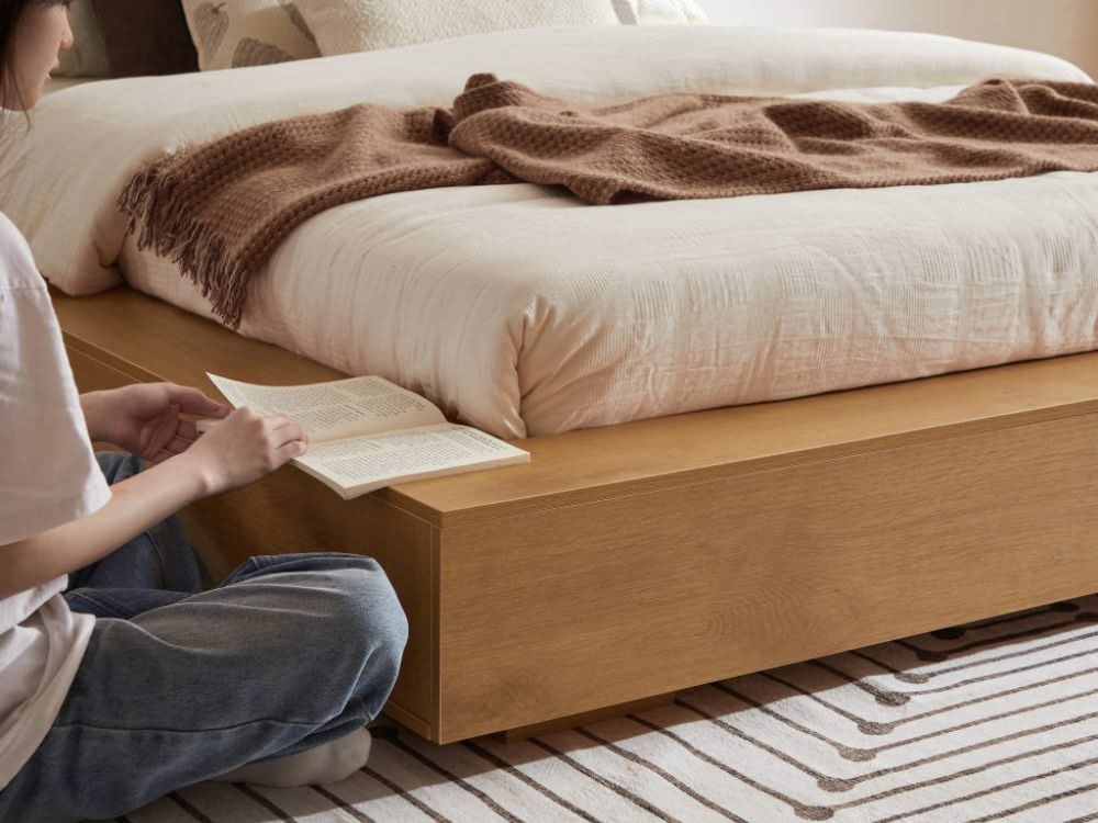 Combining timeless aesthetics with modern functionality, the Elena Platform Bed Frame is an iconic piece of Japandi design. Its natural wood-like finish brings warmth to your space, while the minimalist silhouette creates a clutter-free environment, allowing you to focus on relaxation and rest in your most intimate space.