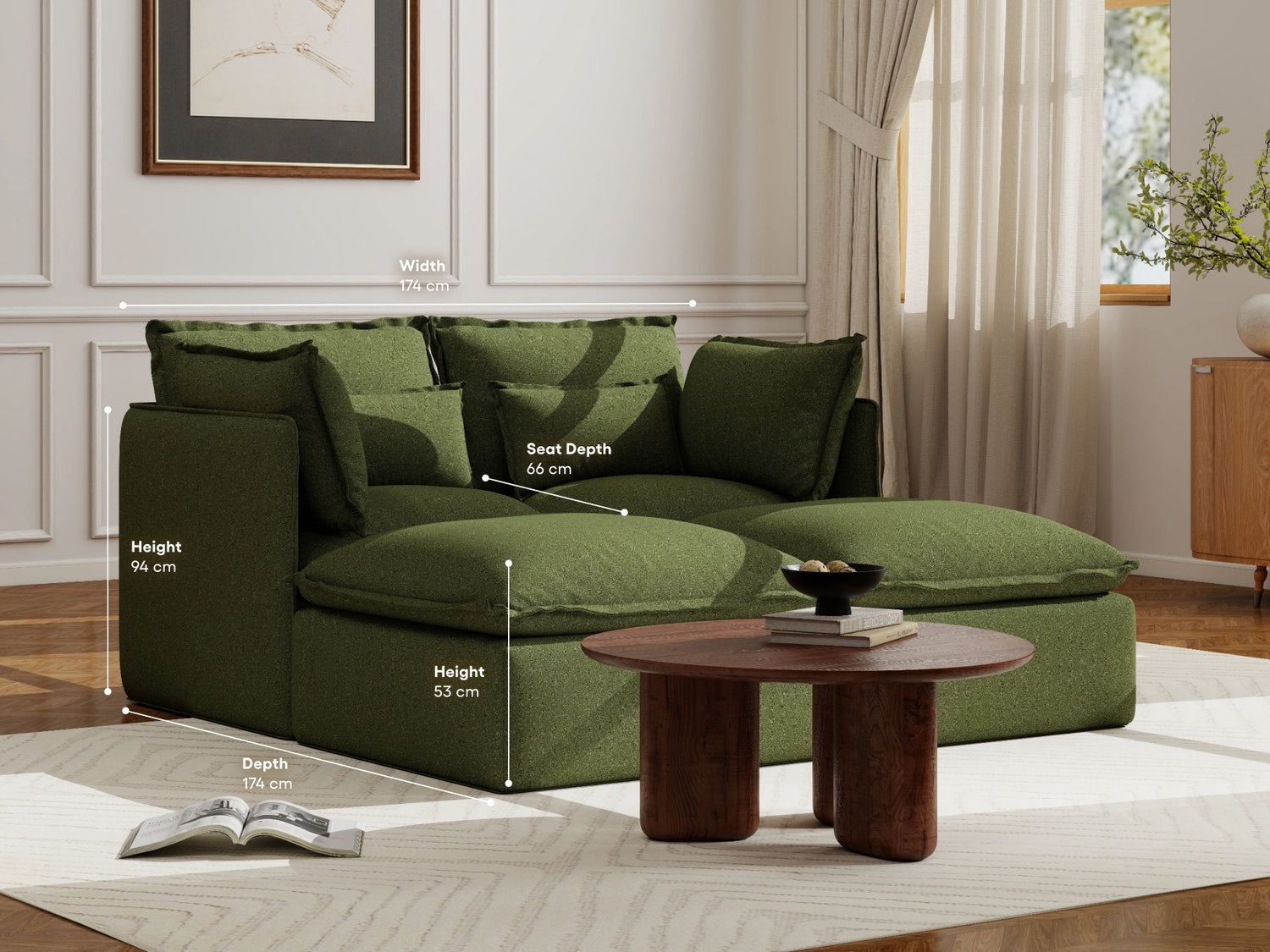 I originally got the 4 seater, I’ve since added two more seats and 2 ottomans. I have 2 toddlers and a dog (and a tradie) AND the white version and I am super impressed with the way it spot cleans. I’ve gotten pen, raspberry and chocolate off without having to wash it in the machine. The pillows get softer everytime we sit on it and it’s firm enough that it has decent support in the back. I hope they bring out more colours! Maybe boucle grey?? Or a chocolate! It has not disappointed me yet!