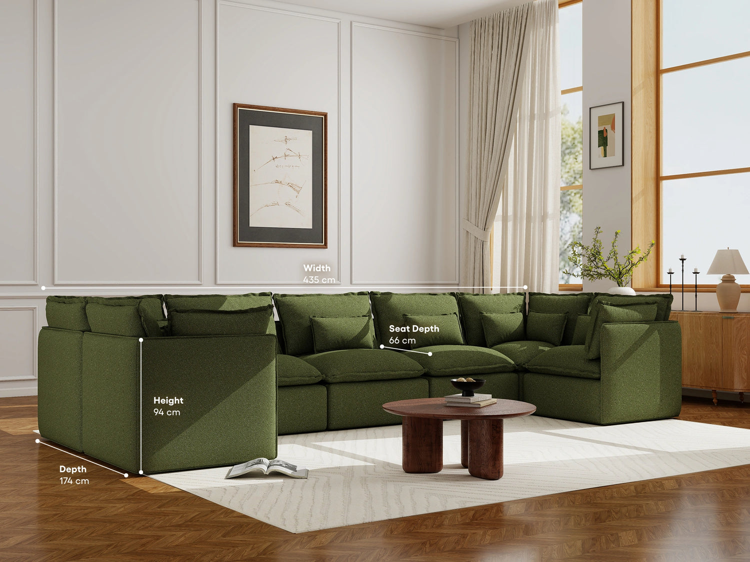 I originally got the 4 seater, I’ve since added two more seats and 2 ottomans. I have 2 toddlers and a dog (and a tradie) AND the white version and I am super impressed with the way it spot cleans. I’ve gotten pen, raspberry and chocolate off without having to wash it in the machine. The pillows get softer everytime we sit on it and it’s firm enough that it has decent support in the back. I hope they bring out more colours! Maybe boucle grey?? Or a chocolate! It has not disappointed me yet!