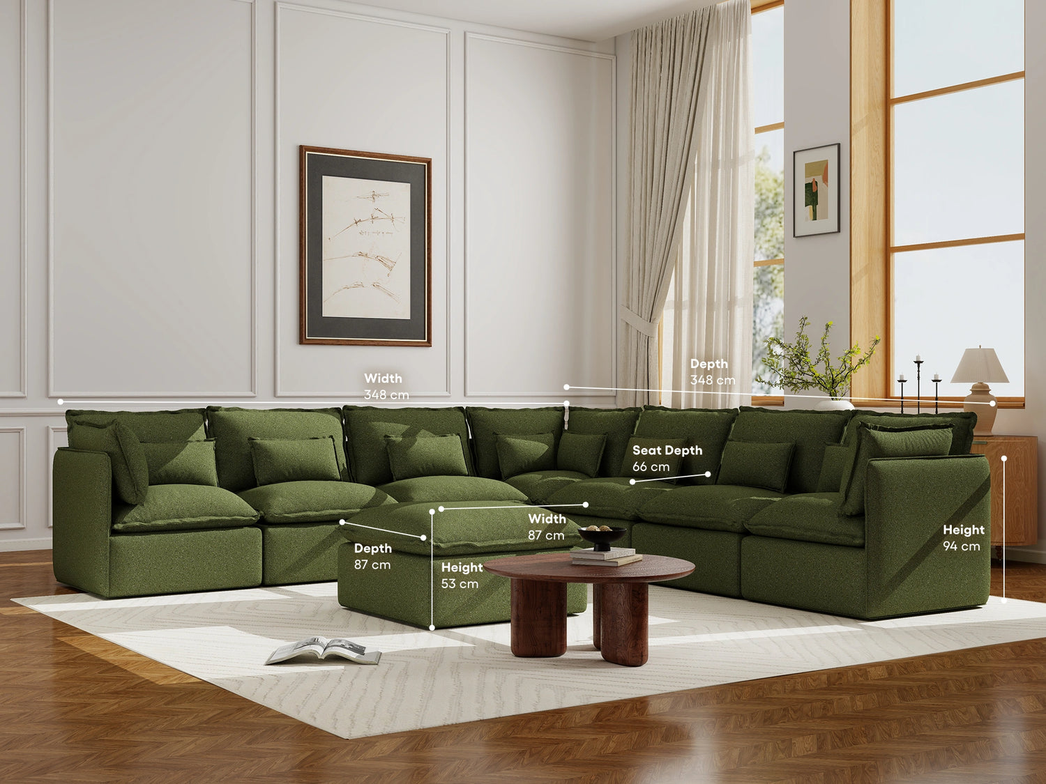 I originally got the 4 seater, I’ve since added two more seats and 2 ottomans. I have 2 toddlers and a dog (and a tradie) AND the white version and I am super impressed with the way it spot cleans. I’ve gotten pen, raspberry and chocolate off without having to wash it in the machine. The pillows get softer everytime we sit on it and it’s firm enough that it has decent support in the back. I hope they bring out more colours! Maybe boucle grey?? Or a chocolate! It has not disappointed me yet!
