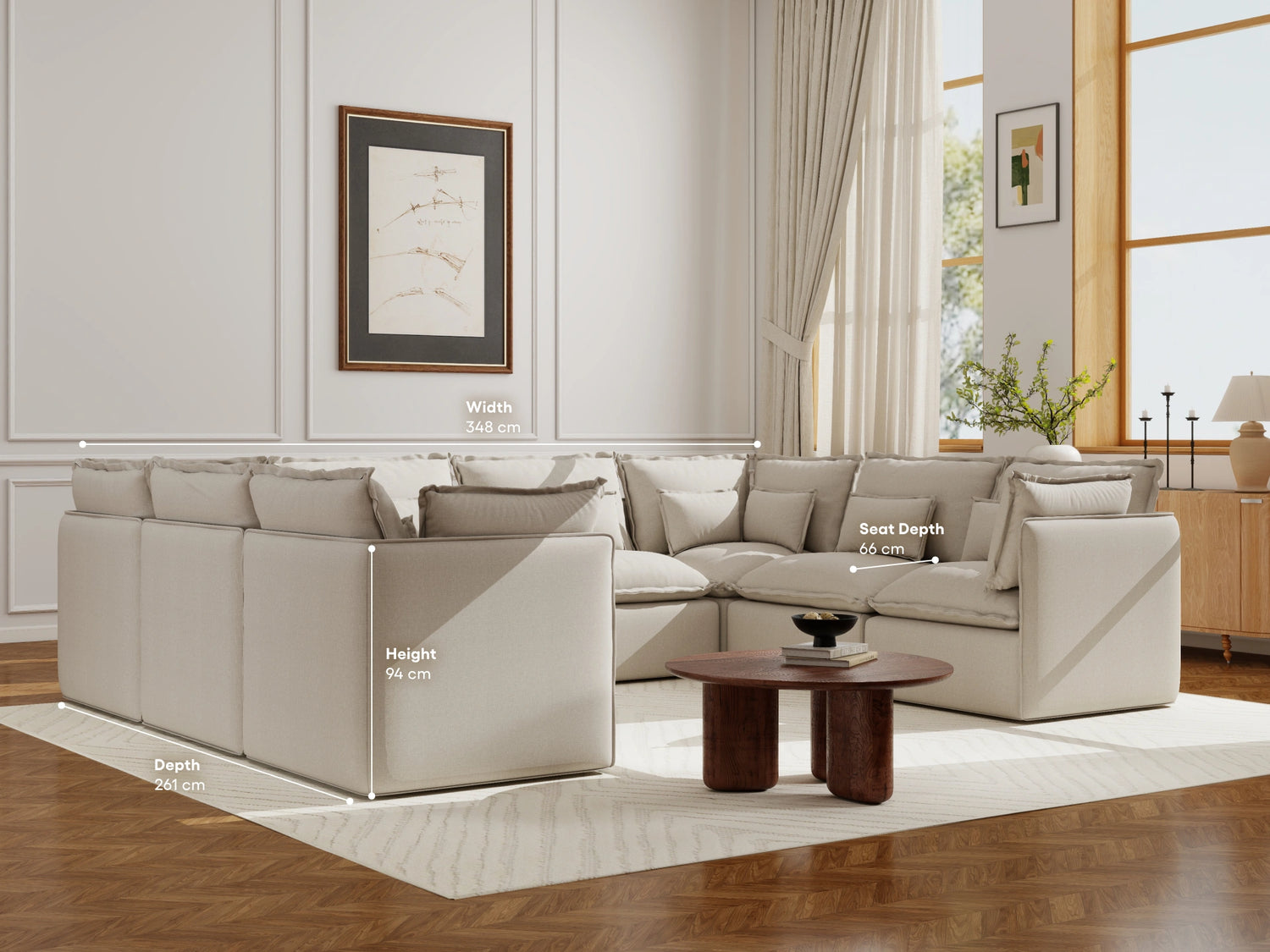 I originally got the 4 seater, I’ve since added two more seats and 2 ottomans. I have 2 toddlers and a dog (and a tradie) AND the white version and I am super impressed with the way it spot cleans. I’ve gotten pen, raspberry and chocolate off without having to wash it in the machine. The pillows get softer everytime we sit on it and it’s firm enough that it has decent support in the back. I hope they bring out more colours! Maybe boucle grey?? Or a chocolate! It has not disappointed me yet!