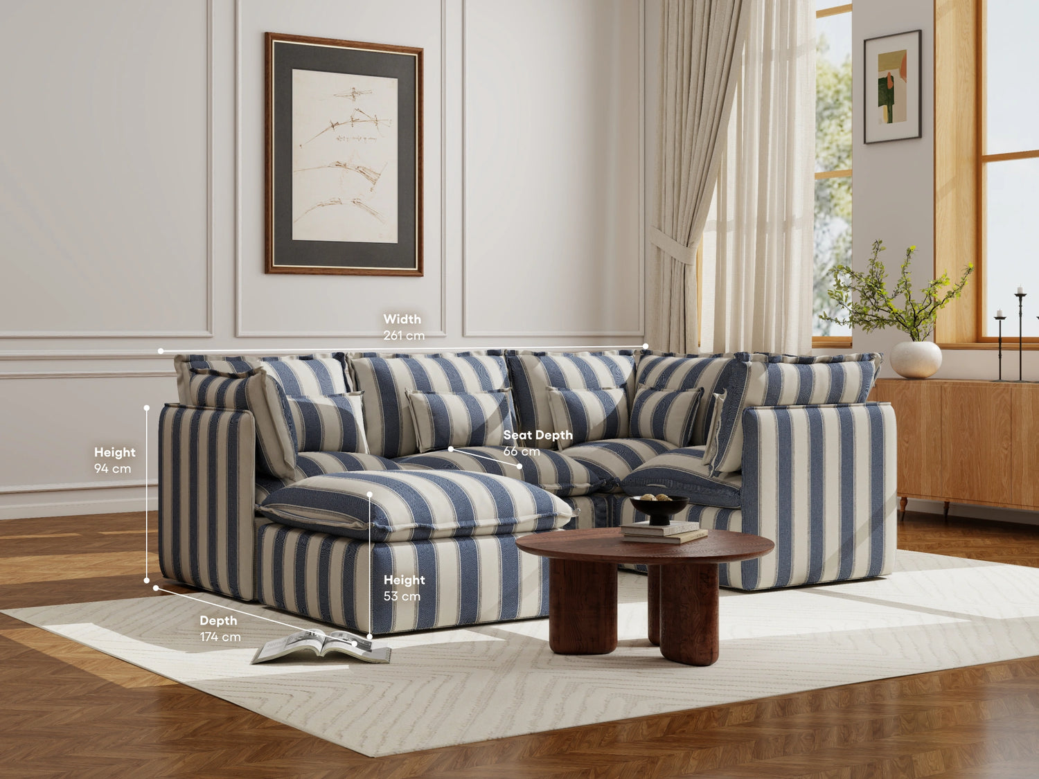 I originally got the 4 seater, I’ve since added two more seats and 2 ottomans. I have 2 toddlers and a dog (and a tradie) AND the white version and I am super impressed with the way it spot cleans. I’ve gotten pen, raspberry and chocolate off without having to wash it in the machine. The pillows get softer everytime we sit on it and it’s firm enough that it has decent support in the back. I hope they bring out more colours! Maybe boucle grey?? Or a chocolate! It has not disappointed me yet!