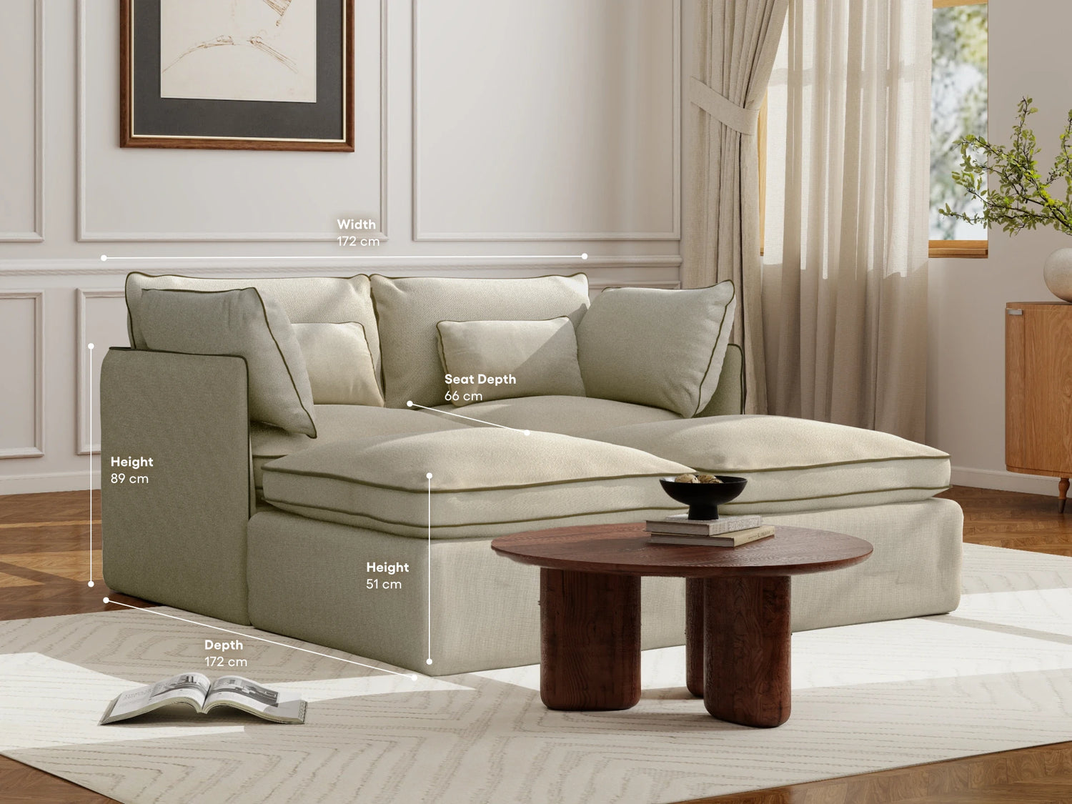 I originally got the 4 seater, I’ve since added two more seats and 2 ottomans. I have 2 toddlers and a dog (and a tradie) AND the white version and I am super impressed with the way it spot cleans. I’ve gotten pen, raspberry and chocolate off without having to wash it in the machine. The pillows get softer everytime we sit on it and it’s firm enough that it has decent support in the back. I hope they bring out more colours! Maybe boucle grey?? Or a chocolate! It has not disappointed me yet!