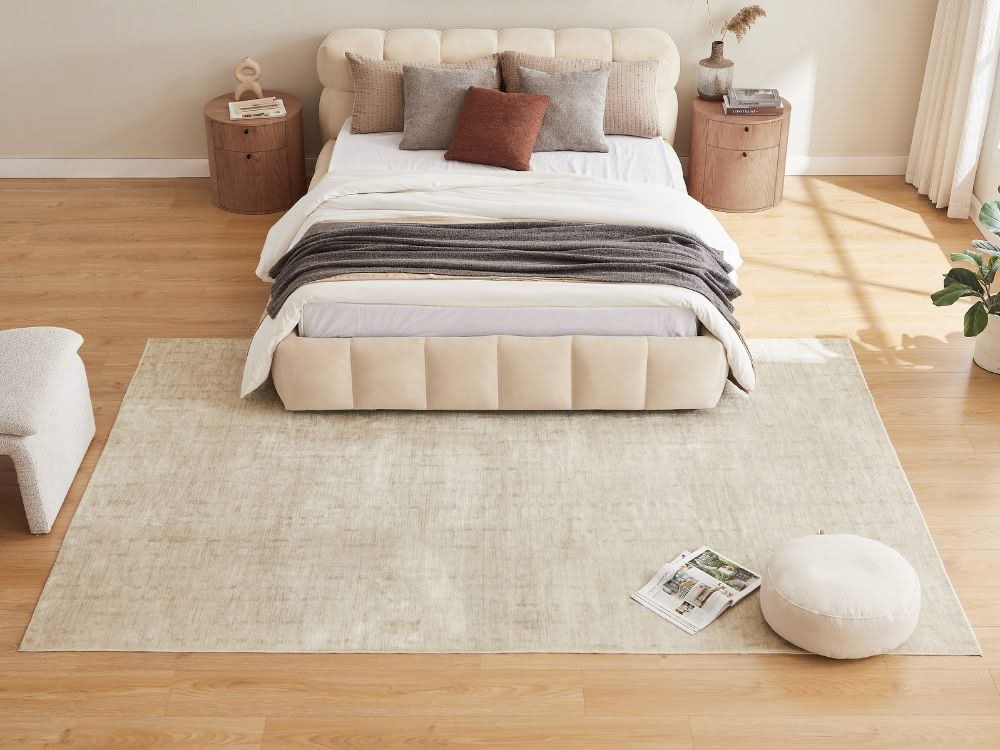 The Mellow Rug’s versatile design and neutral tones allow it to seamlessly blend into any room in your home. Whether placed in a living room, bedroom, or dining area, this rug enhances the space with its understated elegance and practical functionality.