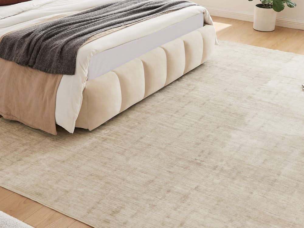 The Mellow Rug's neutral color scheme aligns with current design trends that favor versatile and understated elegance, making it a stylish choice for a variety of decor styles.