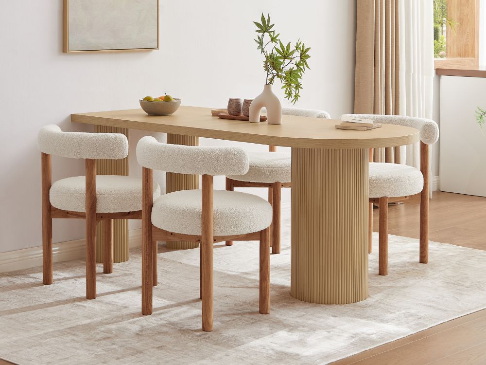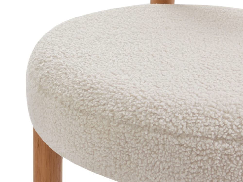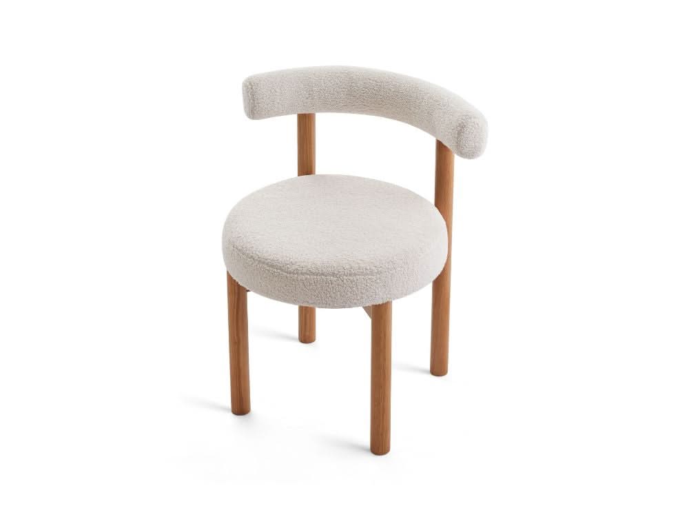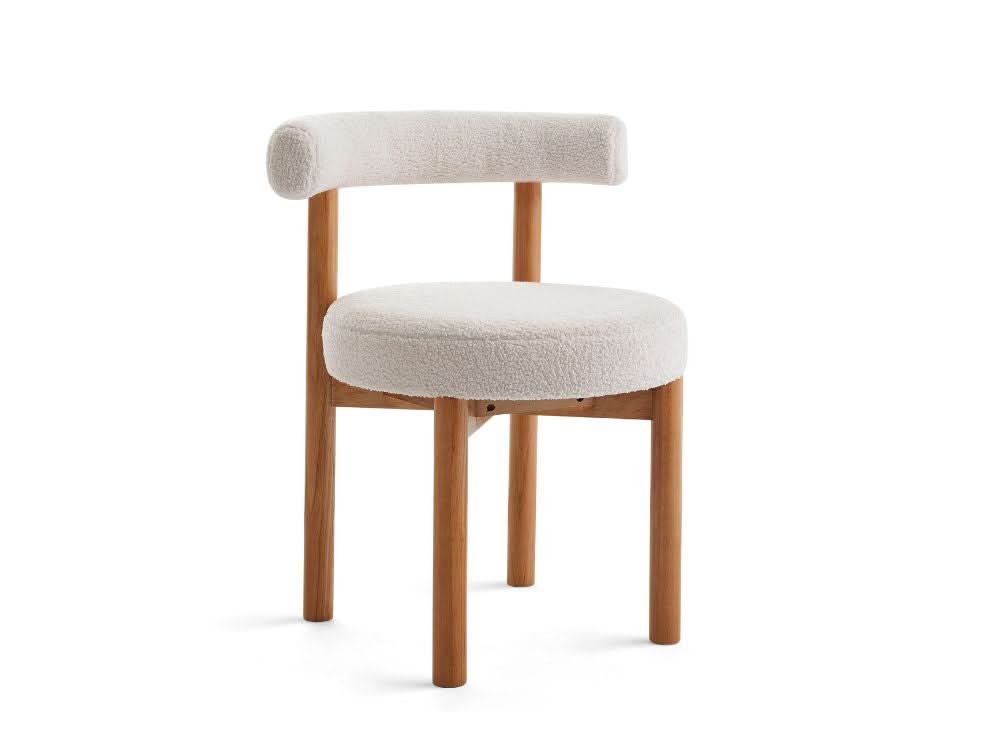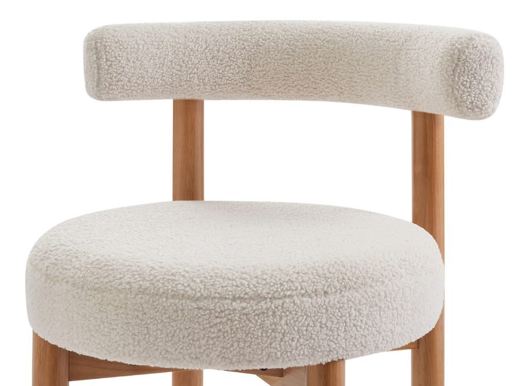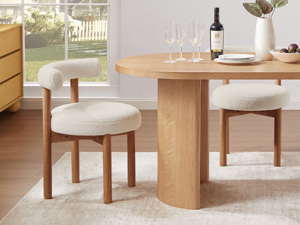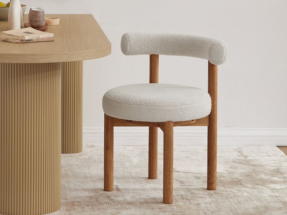 With its creamy fabric upholstery set against rich walnut-stained rubberwood legs, Noah celebrates the balance of soft and structured materials. The tonal contrast doesn’t just add visual intrigue—it enhances its ability to blend into both dark-toned and neutral dining settings.