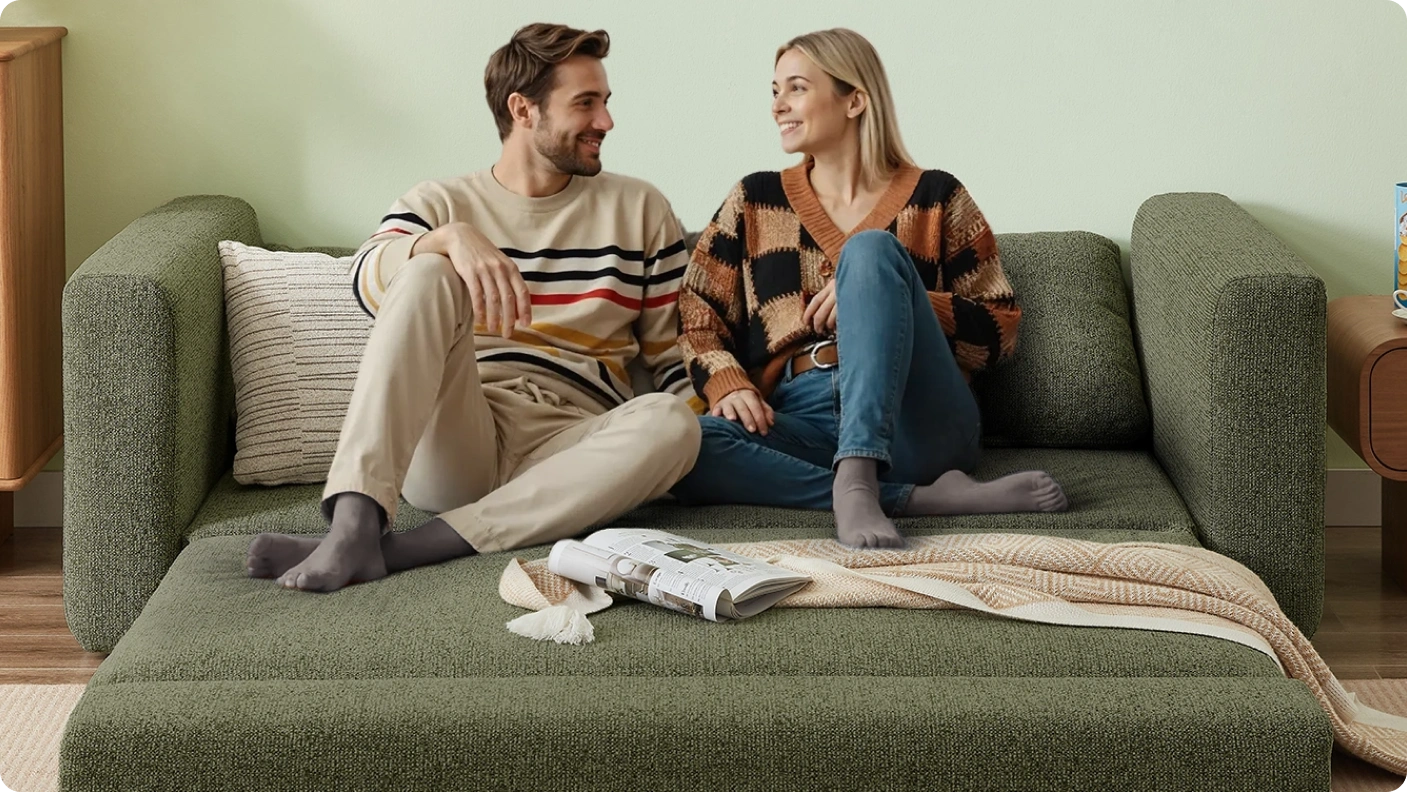 Every Cushie Snuggle Sofa Bed is thoughtfully designed for daily living—offering style, comfort, and durability. Our fabrics are certified by OEKO-TEX® Standard 100, ensuring they’re free from harmful substances and safe for your home.