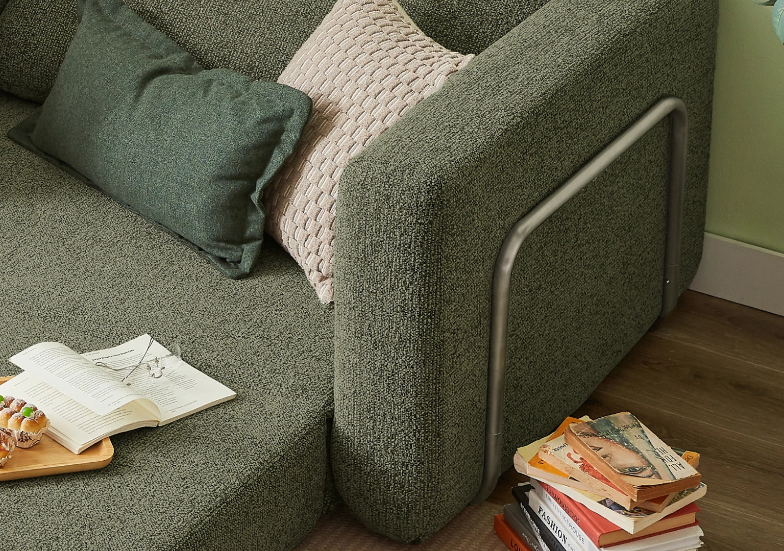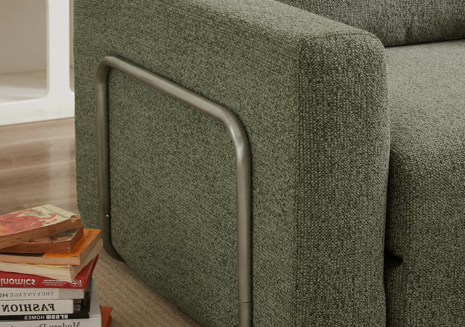 I appreciate the design, aesthetic, and functionality of the sleeper sofa. Materials seem high quality, and the cover seems robust, and the way the sofa pads are connected to form the mattress is clever. It’s comfortable and the arm rests are wide and flat. I like that there’s no sharp corners and it’s soft all over because I have a little one that likes to jump around.