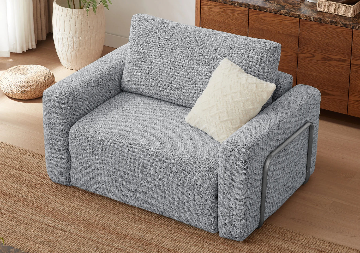 I appreciate the design, aesthetic, and functionality of the sleeper sofa. Materials seem high quality, and the cover seems robust, and the way the sofa pads are connected to form the mattress is clever. It’s comfortable and the arm rests are wide and flat. I like that there’s no sharp corners and it’s soft all over because I have a little one that likes to jump around.